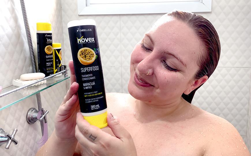 A Família Novex Superfood Maracujá e Mirtilo é um lançamento delicioso, que transforma nosso ritual dentro e fora do banho, deixando o cabelo mais saudável, mais bonito e muito mais impactante. Eu fiquei completamente apaixonada e já entrou pra minha lista de queridinhos!