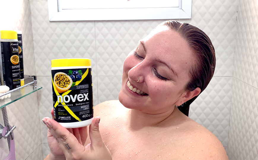 A última etapa do ritual diário é o Creme Para Pentear Novex Superfood Maracujá e Mirtilo. Ele vai manter a hidratação do fio ao longo do dia e facilitar o deslizar da escova ou do pente, diminuindo assim o atrito que quebra o cabelo.