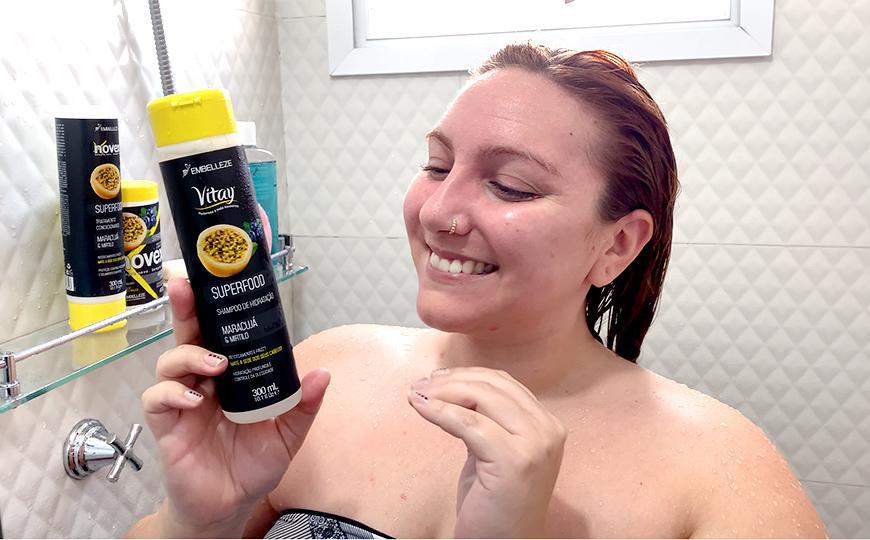 Eu normalmente calculo a eficácia de um shampoo no meu cabelo de acordo com a quantidade de horas que consigo sobreviver sem ficar com a raiz oleosa e com aquele aspecto seboso. Com o Shampoo de Hidratação Vitay Superfood Maracujá e Mirtilo da Embelleze eu consegui ganhar um dia a mais sem lavar o cabelo. O que pra mim, já foi uma super vitória, afinal eu tenho hábito de lavar o cabelo todo dia por conta da oleosidade. Com a raiz bem controlada, consegui manter os fios soltinhos por mais tempo.