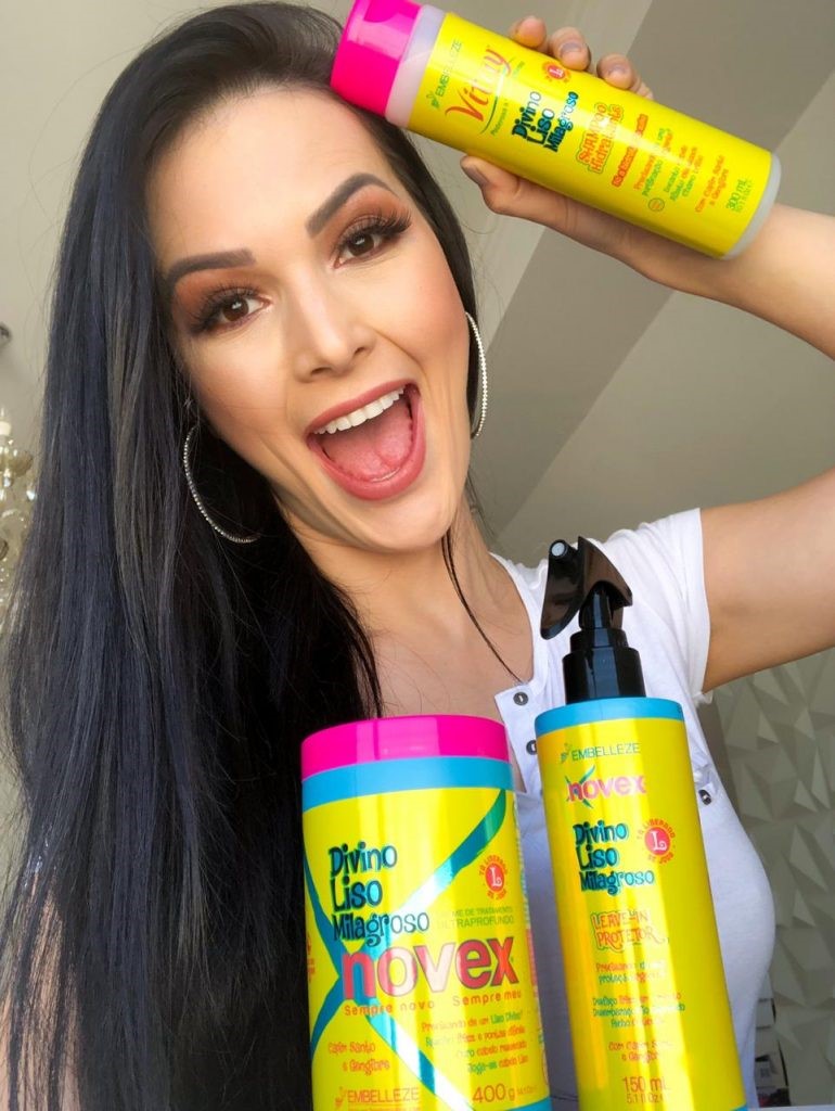 Outra família que eu indico para essa etapa é a Novex Divino Liso Milagroso, que também possui alto poder de hidratação e alinha o cabelo deixando-o sem frizz e com muito brilho.