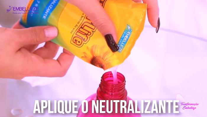 2. Em seguida, aplique o Neutralizante HairLife na mecha e deixe agir por 15 minutos.