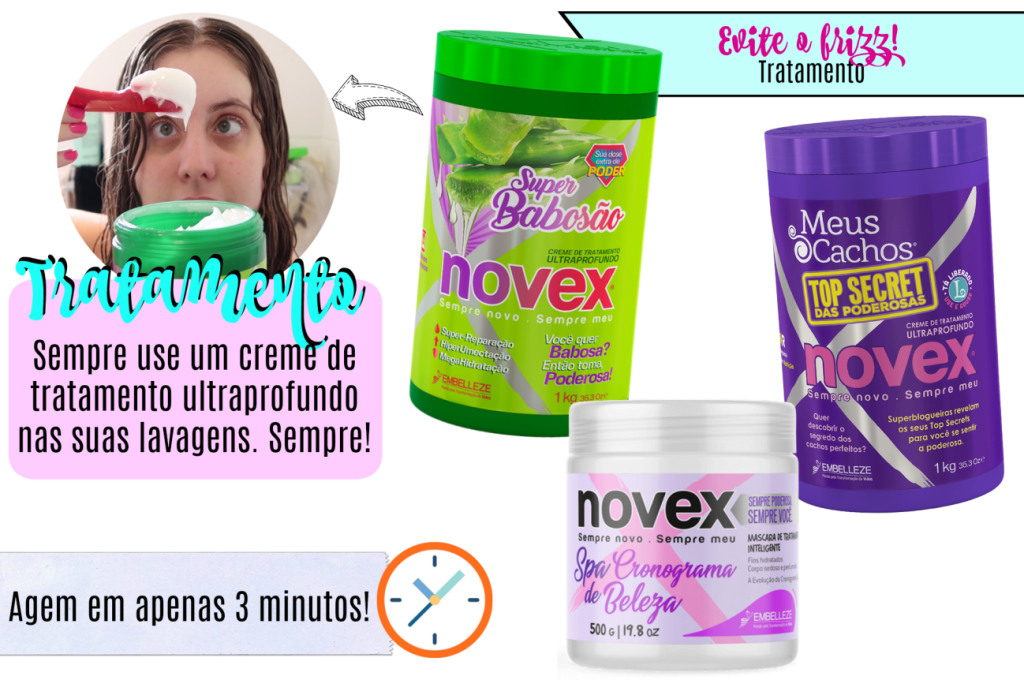 – Creme de Tratamento Ultraprofundo Novex Top Secret: Contém quatro óleos poderosos na sua composição – girassol, abacate, macadâmia e linhaça – sendo perfeito para quando seus cabelos precisam de mais nutrição. Também é liberado para No Poo.