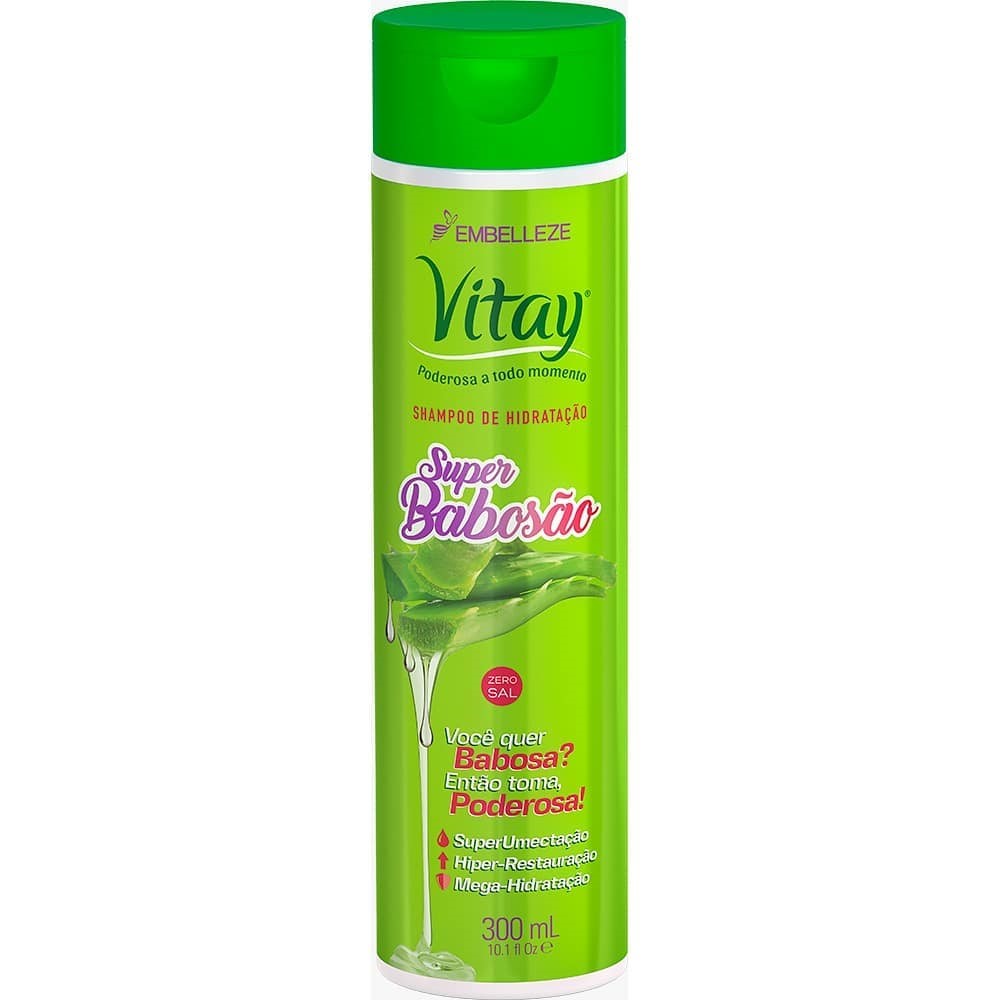 Para finalizar, vamos falar sobre o Shampoo Hidratante Vitay Super Babosão, esse Vitay já um sucesso, primeiro porque a gente sabe como a babosa é hidratante e nutritiva, além disso, ela ajuda a encorpar os fios, e a mantê-los mais resistente. A babosa também é incrível para o couro cabeludo. O Vitay Super Babosão também é um ótimo aliado para combater a quebra capilar por que ajudar a fortalecer o fio desde a raiz.
