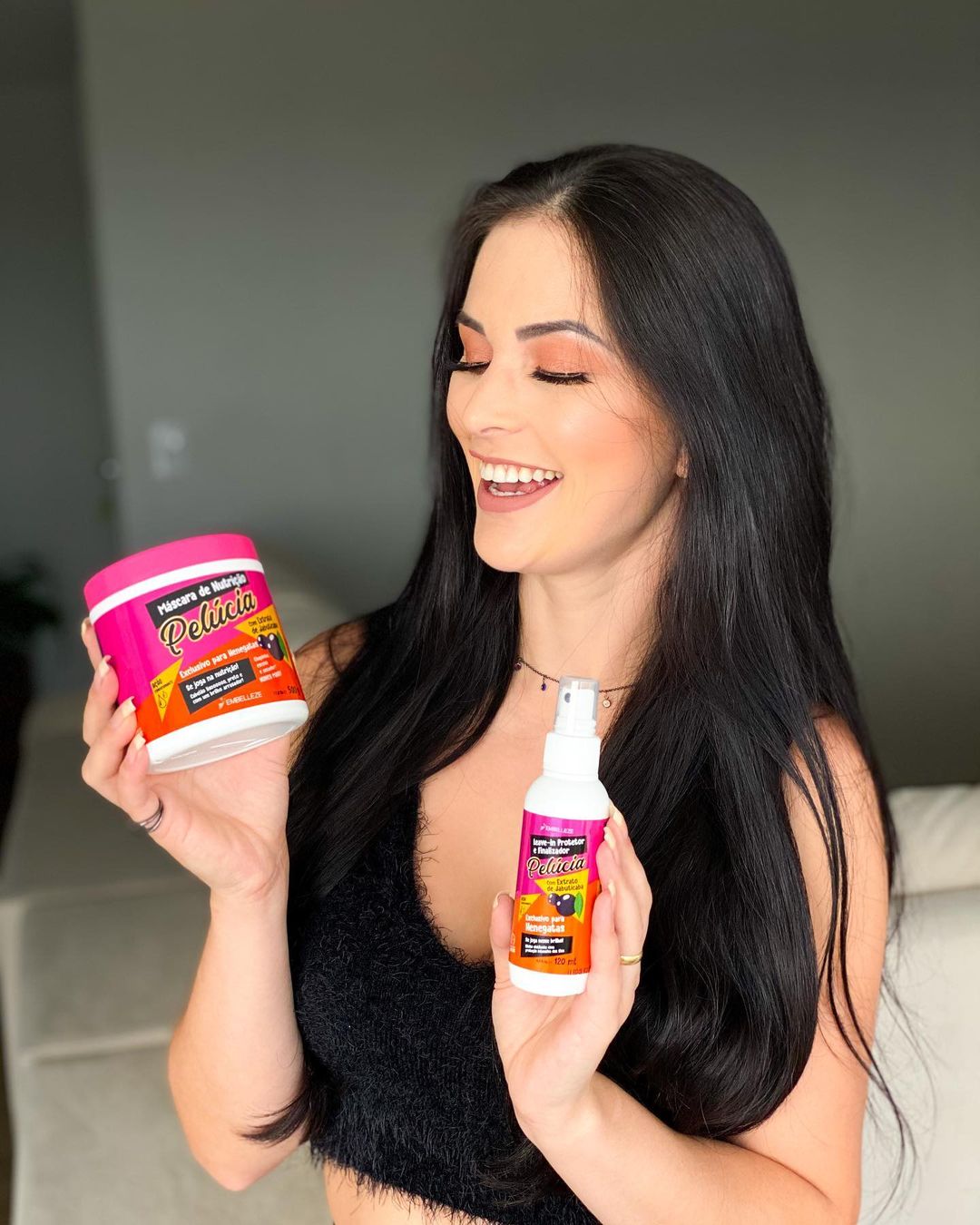 O resultado é um cabelão liso, preto, nutrido e com um brilho arrasador.